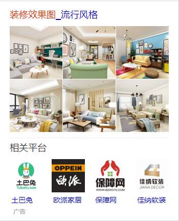 该种样式专为摄影摄像、家具家居、装饰装修行业定制,在自然搜索中展现。如此多张图片的强曝光,强烈吸引网民眼球。